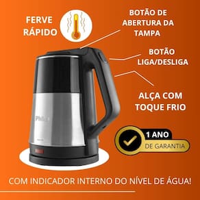 A Chaleira Elétrica Philco PCH13PI 1,9L foi desenvolvida para quem busca praticidade, rapidez e segurança no aquecimento de água no dia a dia. Com jarra em aço inox e capacidade de 1,9 litro, ela é ideal para preparar café instantâneo, chás, cappuccinos, mamadeiras e diversas bebidas quentes. Seu desligamento automático ao atingir o ponto de fervura evita acidentes e contribui para economia de energia, enquanto o sistema de proteção contra superaquecimento garante total segurança durante o uso. A luz indicadora mostra quando o aparelho está em funcionamento, e a jarra removível com base giratória 360° oferece liberdade e facilidade no manuseio. Já o bico com dupla camada e filtro integrado ajuda a manter a temperatura e proporciona um servir mais preciso e seguro.