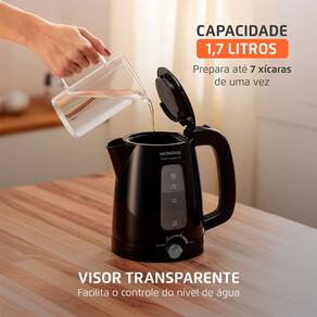 Controle de temperatura ajustável até 100 °C, atinge 70 °C para chimarrão/chá/café e 40 °C para higienização de mamadeiras. Capacidade de 1,7 L (até 7 xícaras). Visor transparente. Sistema de aquecimento rápido. Filtro removível. Jarra destacável. Tampa Abre-Fácil. Botão ON/OFF. Desligamento Automático. Porta-fio., Controle de temperatura ajustável até 100 °C, atinge 70 °C para chimarrão/chá/café e 40 °C para higienização de mamadeiras. Capacidade de 1,7 L (até 7 xícaras). Visor transparente. Sistema de aquecimento rápido. Filtro removível. Jarra destacável. Tampa Abre-Fácil. Botão ON/OFF. Desligamento Automático. Porta-fio.Acessórios