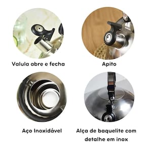 Produzida em aço inoxidável, essa chaleira oferece resistência e durabilidade para o uso diário. O apito sinalizador torna o preparo de bebidas mais prático e seguro.