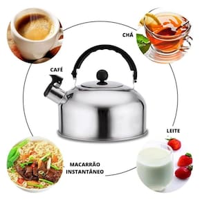 A Chaleira de inox com alça, bico e apito, com capacidade de 2 litros, é um utensílio de cozinha projetado para ferver água de forma rápida e eficiente. Ela é feita de aço inoxidável, um material resistente, durável e de fácil limpeza. A panela possui um design clássico com uma alça resistente ao calor, que permite um viajante seguro e confortável durante o uso. O bico da chaleira é projetado para um despejo fácil e preciso da água fervida. Ele é equipado com um apito, que emite um som audível quando a água atinge o ponto de ebulição, alertando o usuário de que está na hora de desligar o fogo.