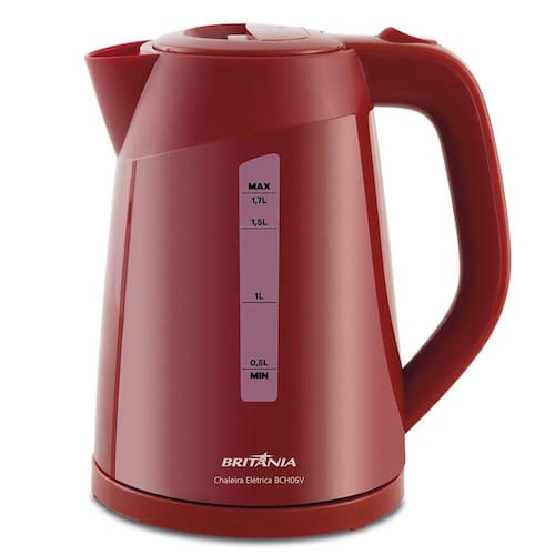 A Chaleira Elétrica Britânia Vermelha 1,7L é perfeita para facilitar seu dia a dia tornar sua cozinha ainda mais moderna e colorida Ferve a água em poucos minutos, ideal para preparar café instantâneo, cappuccino, chá, chimarrão, mamadeira e muito mais Fácil de servir e para transportar, pois a jarra não possui fio. Para segurança, possui desligamento automático, assim a chaleira desliga quando a água inicia fervura. Para evitar acidentes e facilitar a abertura, possui botão automático de abertura de tampa. Sua base é destacável e possui porta fio que facilita o manuseio, transporte e armazenamento. A jarra possui um movimento de 360°C, tornando a utilização da chaleira ainda mais prática. Para preparo da quantidade de café desejada, possui indicador de nível de água. A Chaleira Elétrica Britânia Vermelha 1,7L vai tornar sua vida mais prática e aquecida com água fervida para diversos fins. Você merece