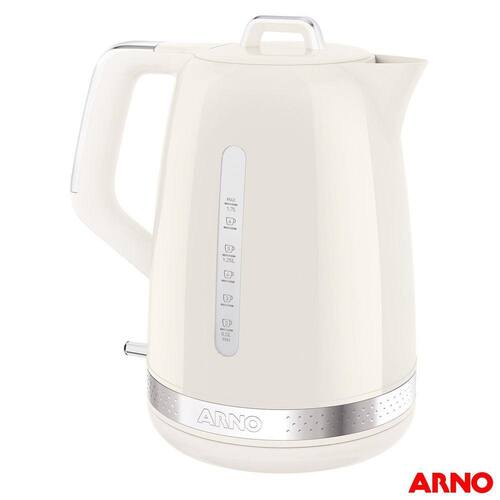 Chaleira Soleil Arno com Capacidade de 1,7L Marfim - SKET Sua cozinha com mais estiloA Chaleira Soleil da Arno tem um design e cor únicos que vão deixar sua cozinha ainda mais gostosa.A chaleira exclusiva da nova linha Soleil conta com dois visores laterais de nível de água e uma grande capacidade de 1,7L. Vem com acabamento cromado e base giratória 360 para auxiliar no manuseio. Além de um bico que serve com precisão e chave liga-desliga com indicador luminoso. Você imagina, clic, a Arno faz. CaracterísticasCapacidade: 1,7 LitrosDesligamento AutomáticoTrava na Tampa Especificações TécnicasModelo: SKETCor: MarfimMaterial: PlásticoPotência: 1500 W (110v)Voltagem: 110VEAN: 3045386382651 (110v)Garantia: 12 meses Dimensões e PesoDimensões do Produto sem Embalagem (AxLxP): 246x191x221 mmDimensões do Produto com Embalagem (AxLxP): 246x191x246 mmPeso do Produto sem Embalagem: 1,42 KgPeso do Produto com Embalagem: 1,52 Kg Itens Inclusos01 Chaleira Soleil,01 Manual de Instruções01 Certificado de Garantia Agente ValidadorProduto possui certificação de segurança compulsória, certificado pela UL-BR 20.0471 , organismo acreditado pela CGCRE do Inmetro.