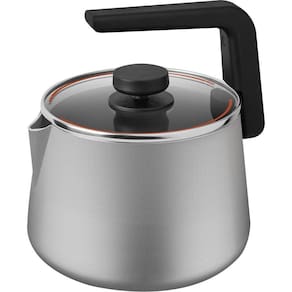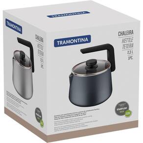 A Chaleira Off-White Tramontina com revestimento antiaderente Starflon Max deixará a higienização do item muito mais simples. Sem contar a espessura de 1,8mm que também proporciona agilidade para a fervura e distribuição proporcional do calor. Além disso, sua alça e pegador são produzidos em material antitérmico, trazendo mais conforto e segurança no momento de manuseio do item. Sua tampa de vidro temperado mantém a umidade dentro da chaleira, evitando a perda de líquidos nos momentos de fervura, apenas com uma saída de vapor no bico para circular o excesso. Características: Marca: Tramontina Linha: Chaleiras Cor: Cinza (Off-White) Material: Alumínio Material do Cabo: Baquelite Antitérmico Antiaderente: Sim Espessura: 1,8mm Capacidade: 2,4L Fogões Compatíveis: Gás, elétrico e vitrocerâmico Compatível com Lava-louças: Sim Possui Apito: Não Material da Tampa: Vidro Temperado