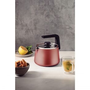 Chaleira Tramontina Em Alumínio 2,3 L Com Revestimento Antiaderente Cobre Com a chaleira Tramontina em alumínio com revestimento interno e externo Starflon Max cobre 2,3 litros você vai aquecer a água para seu chá preferido ou café preto, com muito mais praticidade e eficiência. Desenvolvida com corpo em alumínio com espessura especial que proporciona o aquecimento do líquido de maneira uniforme, ela ainda conta com revestimento Starflon Max, característica que evita que os alimentos grudem na superfície e a torna fácil de limpar. Sua tampa é em vidro temperado e seu cabo em baquelite e pegador são em nylon, materiais antitérmicos que não aquecem e deixam o manuseio muito mais agradável e . Além de todas essas caracerísticas, ela ainda pode ser levada á máquina de lavar louças, agregando muito mais facilidade para sua rotina! Recomendações de Uso: A capacidade volumétrica máxima para uso é de 3/4 da capacidade total da peça.Posicione o cabo da chaleira voltado ao centro do fogã fogões com grade, centralize a peça e alinhe o cabo com a ílios quentes devem estar fora do alcance das crianças.Utilize sempre em fogo baixo ou médio (nunca superior a 260 C).Antes do primeiro uso, lave com esponja macia, sabão neutro ou detergente lí o uso, o cabo e pegador podem afrouxar devido a dilatação normal dos materiais. Reaperte apenas o suficiente, sem forçar.Limpeza: Evite a imersão do utensílio quente em água utilize produtos abrasivos na melhor conservação do produto recomenda-se armazená-lo limpo e descarte do produto e embalagem siga as orientações de reciclagem vigentes. Informações Adicionais: