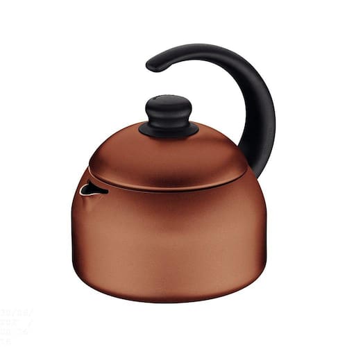 A chaleira Tramontina em alumínio com revestimento interno e externo Starflon Max Laranja 1,9 litros vai deixar a hora de esquentar a àgua para sua bebidas muito mais práticas. Desenvolvida em alumínio, ela conta com espessura especial e revestimento antiaderente, características que juntas, proporcionam o aquecimento da bebida de maneira uniforme e rápida. Seu cabo é em baquelite e seu pegador em nylon, ambos materiais antitérmicos que não aquecem e oferecem um manuseio muito mais seguro. Ela ainda é muito fácil de limpar e pode ser levada à máquina de lavar louças, otimizando sua rotina na cozinha! Orientações Corpo de alumínio com espessura de 1,6 mm que proporciona cozimento rápido e uniforme. Revestimento interno e externo de antiaderente Starflon Max que não gruda, é fácil de limpar, mais durável, não é prejudicial a saúde e é livre de PFOA.Cabo de baquelite antitérmico e pegador de nylon que oferecem segurança durante o manuseio. Pode ir à máquina de lavar louças facilitando seu dia a dia. Características Gerais EAN13 7891112300910 DUN14 17891112300917 NCM 7615.10.00 Peso Líquido 0,6100 kg. Peso Bruto 0,6200 kg. Metragem 0,008533 m³. Dimensões Embalagem (Compr. X Larg. X Alt.) 205x 185x 225 mm. Dimensões Produto (Compr. X Larg. X Alt.) 209x 184x 216 mm. Capacidade 1,90 l. Espessura 1,6 mm. Cor 1 924C2E Hexa Observações A capacidade volumétrica máxima para uso é de 3/4 da capacidade total da peça. Posicione o cabo da chaleira voltado ao centro do fogão. Em fogões com grade, centralize a peça e alinhe o cabo com a grade. Utensílios quentes devem estar fora do alcance das crianças.Utilize sempre em fogo baixo ou médio (nunca superior a 260ºC). Antes do primeiro uso, lave com esponja macia, sabão neutro ou detergente líquido. Com o uso, o cabo e pegador podem afrouxar devido a dilatação normal dos materiais. Reaperte apenas o suficiente, sem forçar. Limpeza: Evite a imersão do utensílio quente em água fria. Nunca utilize produtos abrasivos na lavagem. Para melhor conservação do produto recomenda-se armazená-lo limpo e seco. Para descarte do produto e embalagem siga as orientações de reciclagem vigentes.