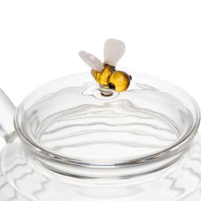 Chaleira vidro e filtro 650ml lovely bee colmeia e abelha A chaleira de vidro borossilicato com filtro lovely bee 650ml, é a escolha perfeita para quem aprecia um chá ou infusão com estilo. Com capacidade de 650ml, ela é feita de vidro borossilicato, um material altamente resistente a choques térmicos, garantindo durabilidade e segurança. O filtro embutido facilita o preparo de chás soltos, proporcionando uma infusão mais limpa e saborosa. Seu design elegante e funcional torna esta chaleira uma peça sofisticada para qualquer cozinha, com linhas onduladas que remetem a uma colmeia, e abelhas e em sua tampa e em partes da peça, é um estilo completamente diferenciado para seu café