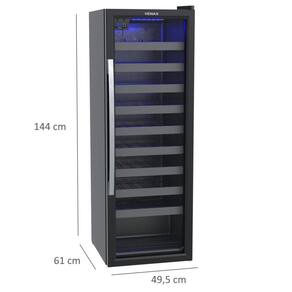 A Champanheira 200 da Venax possui 9 prateleiras deslizantes e 1 prateleira fixa, oferecendo organização e flexibilidade no armazenamento.