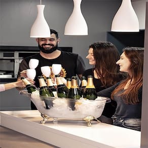 Champanheira Banheira Master Poliestireno Transparente 16 Litros Sirva seu Champagne com design e estilo. Inspirado nas banheiras clássicas, o seu Champagne ficará descansando em uma banheira de gelo na temperatura ideal para servir A Champanheira Banheira Master da Boccati é uma opção diferenciada para eventos e festas. Decora o ambiente dando um charme extra para sua mesa e espaços requintados. Comporta até 8 garrafas de 750 ml e gelo. Mantem sua bebida gelada na beira da praia e piscina. Cor: Transparente Peso: 1,7 Kg Dimensões: 58x32x29 cm (CxAxL) Capacidade: 16 Litros Material: PS (Poliestireno) - Polímero obtido através do monômero de estireno. É de fácil processamento e coloração, com elevada tranparência. Rígido e atóxico, tem excelente qualidade dimensional e é muito utilizado em utensílios domésticos.