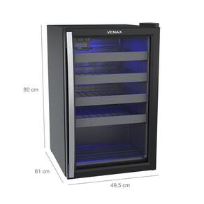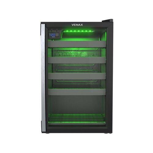 Tipo: Champanheira Controlador de Temperatura: Digital, Regulável(-2C a 8C) Iluminação Interna: LED RGB(16 Opções de Cores) Porta: Vidro Duplo Aquecimento da Porta: Sim Puxador da Porta: Alumínio Abertura da Porta: Da Esquerda para Direita Trava de Abastecimento: Não Degelo: Automático Dreno: Traseiro Recipiente de Degelo: Sim Prateleiras: 4 Deslizantes e 1 Fixa Evaporador: Sem Ar Forçado Sistema de Refrigeração: Compressor Gás Refrigerante: R134a Pés: Frontais Reguláveis e Traseiros com Rolete Gabinete Interno: PSAI Gabinete Externo: Aço Revestido com Pintura Eletrostática Testeira: Não Capacidade de Armazenamento: 24 Garrafas / Máx.90mm Marca: Venax