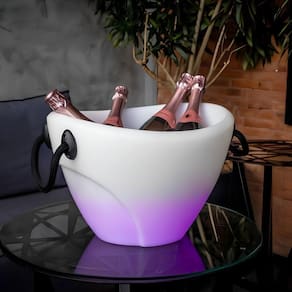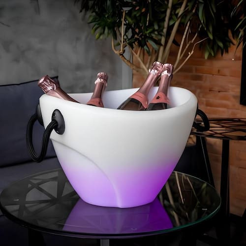 Champanheira de Mesa TPC para 4 Garrafas 13L em Polietileno com LED 16 Cores Parede Dupla com Alça Branco