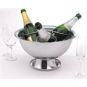 Muito prática, a peça acomoda bastante gelo e permite o repouso de variados tipos de bebidas, entre garrafas e latas, ou ainda apenas gelo para consumo. Possui formato redondo com belíssimo acabamento brilhante no lado externo e escovado na parte interna.