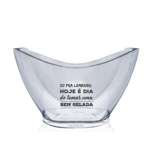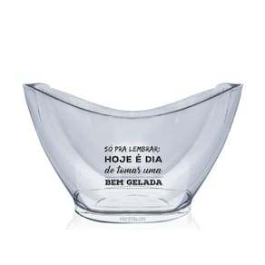 Seja um champagne, espumante ou até cerveja a champanheira oval é perfeita para deixar sua bebida geladinha, a Champanheira Oval Grande da KrystalON é indispensável para sua festa bar ou evento. Vem com a personalização perfeita pra você curtir ainda mais o momento com a galera. Especificações: Material: Acrílico PS, Altura: 24 cm, Diâmetro: 27,2 x 40 cm, Cor: Transparente, Capacidade: 9 L, Tamanho: Único, Quantidade: 1 Peça Ean: 7897581934588