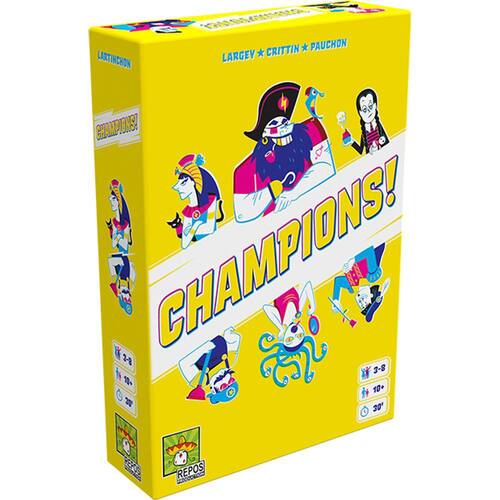 Champions! é um party game de votação baseado em disputas divertidas e inusitadas. Você e seus amigos escolhem 8 Competidores (que podem ser personagens famosos, celebridades e até mesmo o nome de alguém ao redor da mesa!) que se enfrentarão em uma série de Duelos com perguntas capciosas.