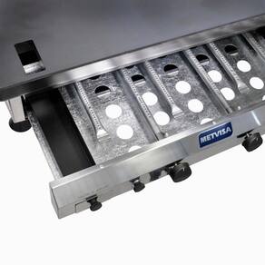 A Chapa a Gás 100cm Metvisa 6,35mm de Espessura CFG10 é uma excelente escolha para uso comercial. Ideal para preparar lanches e porções, esta chapa de fritura se destaca pelo seu baixo consumo de gás, com um consumo de apenas 1,06 kg/h. Além disso, os alimentos podem ser preparados com óleo ou gordura comestível, oferecendo versatilidade no preparo de suas receitas favoritas. Equipada com quatro queimadores, a chapa possui uma espessura de 4,25mm e uma área útil de 100x50cm, permitindo um amplo espaço para cozinhar. A temperatura máxima da chapa é de 280 C, garantindo um cozimento rápido e eficiente. Com uma potência térmica nominal de 13400W e 45600 BTU/h, a Chapa a Gás Metvisa é potente e eficiente.