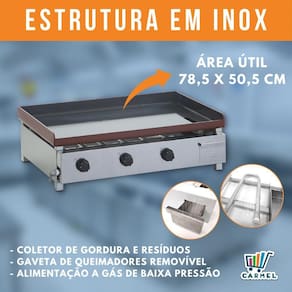 Chapa de Lanche A Gás 3 Queimadores 4,75mm CGB-080 - Edanca