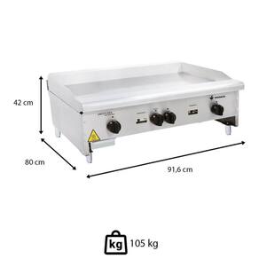 A chapa possui espessura de 8 mm, com opção de 18 mm. Uma chapa mais espessa retém e distribui melhor o calor, ideal para cozinhas com alta demanda, pois mantém a temperatura estável mesmo com o uso intenso.