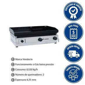 Chapa Bifeteira A Gás Baixa Pressão 6,35mm Venâncio Em Aço Inox Deguste Luxo Com 65 Cm - C65 14213