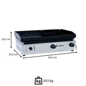 Esta chapa vem equipada com 2 queimadores para garantir um aquecimento eficiente e uniforme da superfície de cozimento.