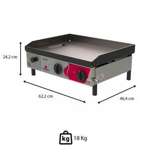 - Com seu design elegante em aço inox escovado e dimensões ideais de 59 x 44 cm, esta chapa é perfeita para preparar deliciosos hambúrgueres, bifes e sanduíches com eficiência e estilo.