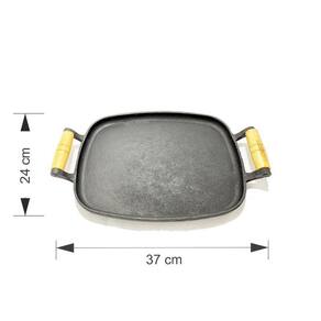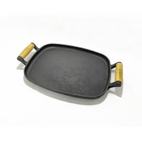 Chapa Bifeteira de Ferro Porção Petisco Duas Alças 24x37cm Chapa de ferro petisco, Casa e Jardim 24x37cm de excelente qualidade para levar a mesa. Muito utilizada por bares e restaurantes para servir porções devido a sua resistência, boa apresentação e por manter-se quente por muito tempo. A chapa possui pezinhos para não danificar a superfície da mesa ou outro local. Ótima chapa para poder preparar e servir em sua cozinha ou churrasqueiras, deliciosos bifes de carnes, frango, ou até mesmo hamburgueres e lanches. PRODUTO Chapa Bifeteira 24x37cm Ferro Fundido Alça De Madeira Marca: Casa e Jardim Comércio Medidas externas: 24 x 37 x 4 cm Peso: 2,000 Kg Fabricado em Ferro Fundido com Cabo de Madeira de fábrica. Marca: Casa E Jardim Comércio Ean: 7899085485719
