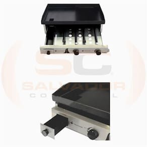 - Queimadores bem distribuídos com sistema de gaveta posicionado abaixo da chapa.
