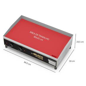 A chapa elétrica é a melhor escolha para uso em Shopping centers e em lugares que possuem energia solar, gerando grande economia. Esta chapa da RED Chameleon tem 5600w de potência, uma das mais potentes do mercado, aquecendo toda a área por igual, garantido grelhados e hambúrgueres sempre homogêneos. Quer usar a chapa em casa? Não tem problema! Você só precisará de uma tomada de 30 amperes e uma coifa para fazer seus preparos.