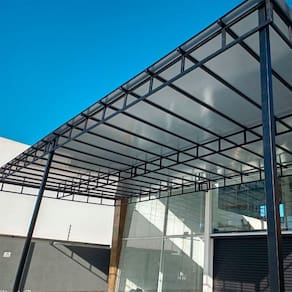 O Policarbonato Alveolar pode ser aplicado em pergolados/estruturas, claraboias, toldos, garagens, coberturas e fechamentos verticais. As chapas de 6mm são ideais para vãos de até 70cm entre os caibros/travessas da estrutura. Se o vão da sua estrutura for maior que 70cm, é recomendado o uso de uma chapa mais espessa.