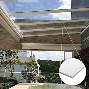 Pode ser aplicado em pergolados/estruturas, claraboias, toldos, garagens, coberturas e fechamentos ical, enclausuramento de máquinas e escudos de proteção salivaresPara coberturas utilizando as chapas de 6mm vãos até 1m (entre os caibros/travessas da estrutura)Atenção se o vão da sua estrutura for maior que o 1m recomenda-se corrigir a estrutura