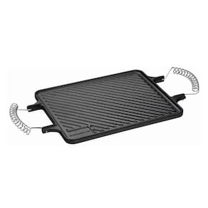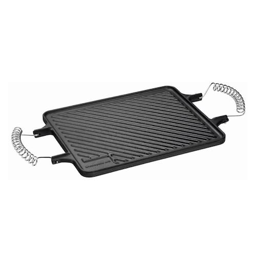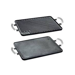 A Chapa Dupla Face Retangular Alça Espiral da Panela Mineira possui um design autêntico, com um dos lados liso e o outro estriado. Ideal para preparar carnes, legumes, peixes e outros pratos, de maneira prática e eficiente, em qualquer uma de suas faces. Sua excelente distribuição e retenção de calor, característico do ferro fundido, mantém os alimentos aquecidos por muito mais tempo, além de enaltecer seus sabores e aromas. Pode ser utilizada diretamente sobre todas as fontes de calor, assim como churrasqueiras.