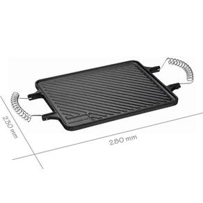 Chapa Dupla Face Retangular Espiral Panela Mineira 28x23cm A Chapa Dupla Face Retangular Alça Espiral da Panela Mineira possui um design autêntico, com um dos lados liso e o outro estriado. Ideal para preparar carnes, legumes, peixes e outros pratos, de maneira prática e eficiente, em qualquer uma de suas faces. Sua excelente distribuição e retenção de calor, característico do ferro fundido, mantém os alimentos aquecidos por muito mais tempo, além de enaltecer seus sabores e aromas. Pode ser utilizada diretamente sobre todas as fontes de calor, assim como churrasqueiras. Onde usar a Chapa: Pode ser utilizado em fogões a gás, a lenha, elétricos, cooktops de indução, vitro-cerâmicos, fornos, grills, churrasqueiras e fogo de chão. Orientação de Uso e Conservação:Antes do primeiro uso: Lave com água e sabão, seque bem com um pano e leve ao fogo para remover toda a umidade. Já vem pronta para uso, então não precisa ser curada. Guarde em um local seco. Após cada uso: Lave com água e sabão, usando uma esponja ou escova para remover todos os resíduos de alimentos. Se restarem resíduos, ferva água com um pouco de detergente para soltá-los. Pintura: Revestimento atóxico que garante durabilidade e proteção prolongada, sem causar nenhum dano à saúde. Características Técnicas e Medidas: Chapa: Dupla Face Estriada/Lisa.Linha: Bares e Restaurantes.Material: Ferro Fundido.Comprimento: 28cm.Modelo: Retangular.Largura: 23cm.Altura: 2,5cm.Alças: Espiral.Peso: 2,8Kg. Itens Inclusos: 01 Chapa Dupla Face Retangular Alça de Espiral Panela Mineira 28x23cm. Código: 721PMProdutoLojaPlast.