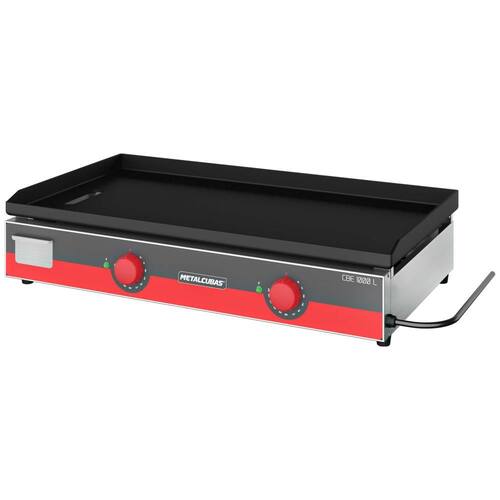 Características Técnicas: Dimensões da chapa (LxP): 100cm x 52,5cm Dimensões gerais (LxAxP): 102cm x 23cm x 58cm N de queimadores: 2 Consumo: 6,7 kW/h Peso: 56,0 kg Potência: 7,2 kw (220V)