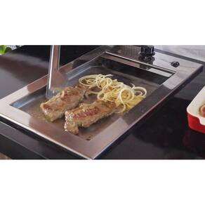 Fornecida para gás encanado (GN) ou gás de botijão (GLP), conta com um coletor de gordura removível e é fabricada em aço inox 304, o que aumenta a durabilidade do produto e faz com que a chapa seja resistente à corrosão. Sua temperatura máxima é atingida em até 10 minutos e a instalação é feita por encaixe, sem necessidade de fixação por parafusos, buchas ou colas; basta embutir a chapa na bancada, em nicho com ventilação previamente preparado. O compartimento coletor de resíduos facilita a limpeza do produto e seu design moderno faz com que a chapa se integre na decoração com harmonia, embelezando sua cozinha, varanda ou área gourmet. Acompanha também um kit de instalação composto por 01 chave fixa, 01 válvula de baixa pressão e 01 anel de vedação O-ring.