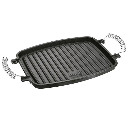 Chapa de ferro fundido, medidas 31 cm de comprimento x 25 cm de largura, essa medida não inclui as alças que medem 3 cm de cada lado. Possui alças de aço em espiral que não esquentam . Marca Panela Mineira. Melhora o grelhado sem acúmulo de líquidos e gorduras. Chapa extremamente resistente, pode ser utilizado diretamente sobre todos os tipos de fogões a gás, a lenha, elétrico, a álcool e em churrasqueiras. Possui canaletas nas bordas para armazenamento de liquidos. Ideal para preparar carnes, legumes, sanduiches, ovos e etc. Muito utilizada por bares e restaurantes para servir porções devido sua resistência, boa apresentação e por manter-se quente por muito tempo.