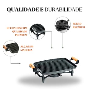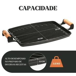 Modelo: Chapa Grill Retangular com Alça de Madeira 33 × 25 × 5,5 cm Marca: Panela Mineira®