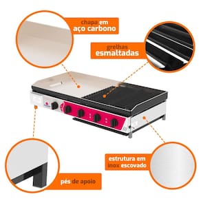 Este equipamento é ideal para grelhar carnes, peixes, legumes e preparar frituras em geral, oferecendo versatilidade para o seu cardápio.