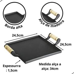 Dimensões Perfeitas: Com medidas de 24,5 x 1,7 x 34,5 cm, oferece espaço generoso para preparar carnes, pães, ovos, legumes, peixes e uma variedade de alimentos.