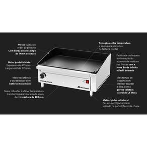 Resistências elétricas de alta performance garantem distribuição homogênea de calor, assegurando o ponto ideal em toda a superfície;
