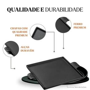 1 Chapa Petisco Quadrada em ferro fundido 24 × 24 × 1,5 cm com alça em ferro