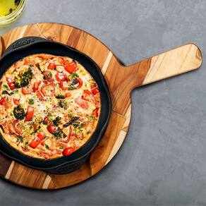 O Conjunto Chapa Petisco Redonda da Panela Mineira é um produto moderno, prático e eficiente, que apresenta alto desempenho no preparo de diversas receitas. Ideal para preparar, fritar, selar e grelhar carnes. Acompanha suporte de madeira para dar mais charme a sua peça. Sua excelente distribuição e retenção de calor, característico do ferro fundido, mantém os alimentos aquecidos por muito mais tempo, além de enaltecer seus sabores e aromas. Muito utilizada por bares e restaurantes para servir porções devido a sua resistência, boa apresentação e por manter-se quente por mais tempo.