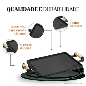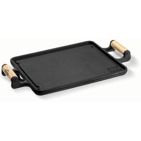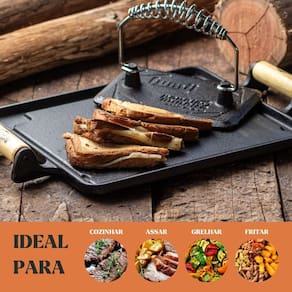 Chapa lisa retangular de ferro fundido, ideal para grelhar carnes, legumes, peixes e preparar diversos petiscos com praticidade. Possui alça em madeira naval de reflorestamento, que facilita o manuseio e adiciona charme ao servir. Proporciona aquecimento uniforme e conserva o calor por mais tempo. Diferente de panelas comuns, as de ferro fundido Panela Mineira® são livres de toxinas, duram por gerações e liberam ferro naturalmente. Ideal para bares, restaurantes, hotéis, pousadas, buffets e também para o uso diário em casa.