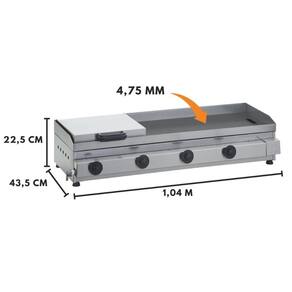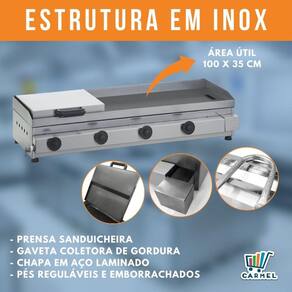 Equipamento de alta performance já que a chapa de aço mantém a temperatura ideal para a preparação de lanches e outros alimentos. Utiliza gás de botijão doméstico (baixa pressão) e os queimadores em alumínio de longa durabilidade.
