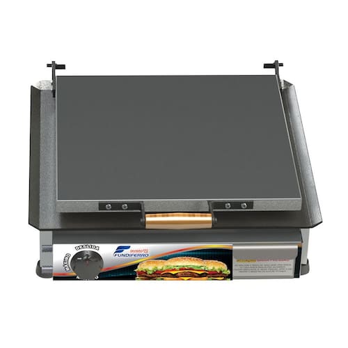 Chapa Sanduicheira com Prensa 4040SNDP ? FundiferroQuer dar um toque especial no preparo de lanches e outras porções em casa? A Chapa Sanduicheira com Prensa 4040SNDP da Fundiferro vai te ajudar, unindo qualidade (material mais espesso do mercado), design, praticidade e economia em um único produto.Utiliza-se a chapa mais espessa para evitar que com o uso a chapa empene. Recomendada para uso doméstico.Conheça a sua Sanduicheira com PrensaMaterial da Área de Fritura: Chapa de Aço 3,18mm (a mais espessa do mercado)Material da Estrutura da Chapa: Inox Brilhante Queimadores: 1 Queimador DuploPés Niveladores: 4Gaveta Coletora de Resíduos: SimAlimentação: Gás GLPPrensa: SimAcompanha Manual de InstruçõesEspecificações TécnicasÁrea de Fritura: 0,18m²Registro de Regulagem de Chama (un): 1Temperatura Máxima da Chapa: 250°CConsumo GLP: 0,3kg/hDimensões ExternasAltura: 15cmLargura: 43cmProfundidade: 42cmPeso: 11kgCuidados e Manutenção da Chapa para LanchesAlguns agentes de limpeza não devem ser utilizados em hipótese alguma: querosene, gasolina, solventes, ácidos, vinagres, produtos químicos ou abrasivos.Utilize sabão neutro e esponja, evite objetos pontiagudos ou palha de aço.AtençãoNão se deve usar regulador de gás de alta pressãoGarantia03 Meses contra defeitos de fabricação