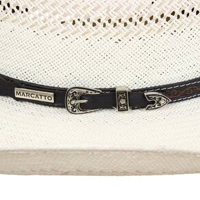 O Chapéu modelo 30X da marca Marcatto é um acessório de moda elegante e rústico, feito com materiais naturais de alta qualidade. Com um design clássico de chapéu country, ele apresenta uma aba 10,5cm e uma copa acentada 12cm, uma faixa de couro trabalhada que adiciona um toque de rusticidade ao visual. Além de ser um item de moda sofisticado,também é altamente funcional, protegendo seu rosto e cabeça dos raios solares e vento. Ideal para eventos ao ar livre, passeios no campo ou para complementar um traje mais casual, este chapéu é uma escolha versátil e elegante. Seja para um visual descontraído ou rústico, ele é uma escolha perfeita para quem busca estilo e conforto no verão.