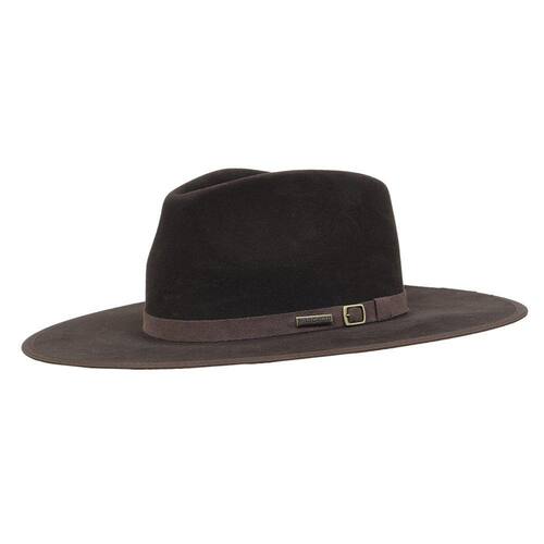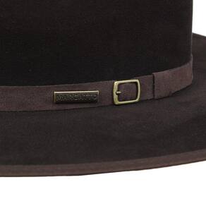 Chapéu na clássica qualidade Marcatto, feito em veludo na cor Marrom, possui copa de 10,5cm e aba de 9cm, bandinha de material sintético com boton e fivelinha, presente também carneira de elástico para melhorar o encaixe na cabeça.