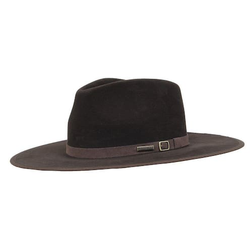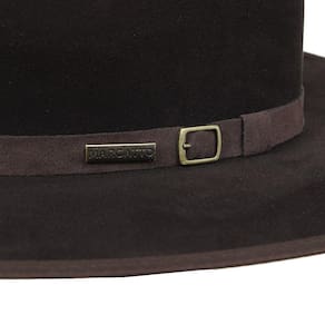 Chapéu na clássica qualidade Marcatto, feito em veludo na cor Marrom, possui copa de 10,5cm e aba de 9cm, bandinha de material sintético com boton e fivelinha, presente também carneira de elástico para melhorar o encaixe na cabeça.