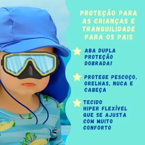 TAMANHOS-Tamanho P (6 meses a 2 anos) - COM cordinha de amarrar;-Tamanho M (2 anos a 6 anos) - COM cordinha de amarrar;-Tamanho G (7 anos a 14 anos) - COM cordinha de amarrar.Confeccionados com tecido muito flexível e confortável, com proteção solar UV 50+, com ergonomia pensada para servir perfeitamente em cabeças infantis e até de adultos (tamanho G), testados e aprovados!Uma das maiores preocupações dos pais, quando levam seus filhos em atividades ao ar livre, são as queimaduras de sol! Com o nosso lindo boné/ chapéu infantil UV 50+, esse problema acabou! Pois ele protege o rosto, as orelhas e a nuca dos pequenos, até embaixo d'água, com muito conforto, deixando os cuidadores despreocupados!Afinal, o que significa Proteção Solar UV50+?UV é a sigla para ultravioleta e 50 +, significa que que 98% dos raios solares são bloqueados, protegendo toda a área de cobertura da cabeça, rosto, orelhas, pescoço e nuca da criança.Tecido com proteção solar UV 50 + PREMIUM, antibacteriano e com Aloe Vera. Proporcionando conforto para os pequenos.Composição do tecido:Malha 90% Poliamida e 10% Elastano (proporcionando elasticidade e um ajuste perfeito para as cabeças infantis). Confeccionado com microfibra de última geração, com toque macio e pigmento, que preserva de forma efetiva, a proteção solar por tempo VITALÍCIO, ou seja, o boné pode ser lavado por infinitas vezes, preservando por todo tempo, a sua finalidade de proteção contra raios solares.Tecido com eficácia comprovada, é submetido a rigorosos testes, realizados por laboratórios credenciados, a fim de comprovar o FPU (fator de proteção ultravioleta).Tratamento Sport Dry com Aloe Vera:Tecnologia inovadora, que permite a absorção do suor, proporcionando um alto frescor à pele sensível das crianças e evitando a proliferação das bactérias causadoras de maus odores.Modo de Lavar:Produto com secagem rápida, deve ser lavado à mão, com sabão neutro e NUNCA com produtos à base de cloro. Não deve ser passado à ferro.