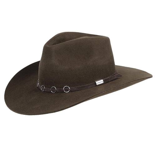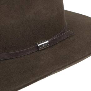 Chapéu Marcatto modelo Muladeiro Cavalgada fabricado em Feltro na cor Marrom, possui copa de 10,5cm e aba de 9cm, bandinha de material sintético com boton e argolas de metal e carneira de elástico.