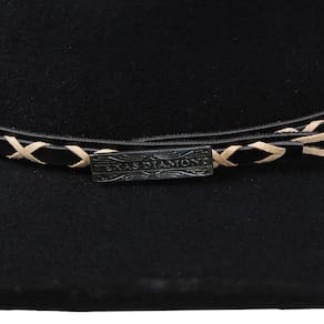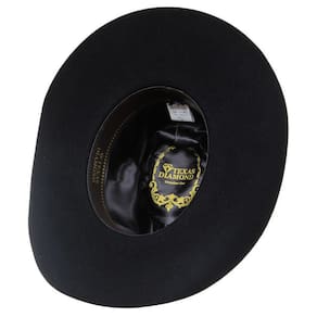 Um Chapéu da nossa marca exclusiva Texas Diamond modelo Cavalgada, fabricado em feltro de alta qualidade na cor Preto, possui aba de 10cm de copa social de 10,5cm, bandinha de material sintético com detalhe trançado e carneira de recouro auxiliando no melhor encaixe do chapéu.