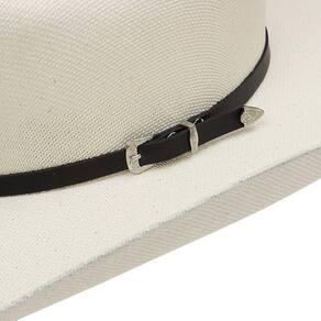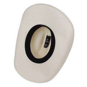 Chapéu Mundial modelo Americano fabricado em Fibra Têxtil na cor Branca, possui aba de 10cm de copa tradicional de 10cm, bandinha de material sintético com fivela e carneira de elástico.