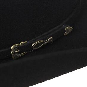 O Chapéu Country da marca Cury é feito de um feltro (Pêlo e Lã) de alta qualidade, o que o torna durável e resistente às intempéries. Com uma cor Preto, ele apresenta uma aba larga de 10cm e topo acentado de 11,5cm, característicos dos chapéus country. A parte interna possui uma faixa de couro, que ajuda a manter a cabeça no lugar. O chapéu também é decorado com uma bandinha customizada em feltro preto, com um detalhe metálico na lateral, o que adiciona um toque elegante e sofisticado ao design rústico. Com sua combinação de estilo e funcionalidade, este chapéu é a escolha perfeita para cowboys e cowgirls que buscam uma peça clássica e atemporal para complementar seu visual country.